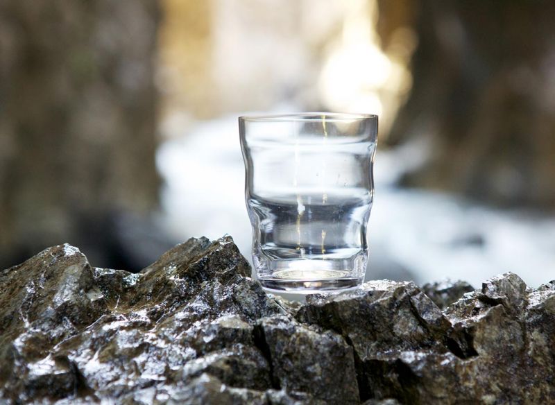 Die dreigliedrige Bauform wurde nach dem Gesetz des goldenen Schnittes komponiert. Das im Glas befindliche Wasser oder der Saft wird in seiner biologischen Wertigkeit gestärkt und im Geschmack blumiger.